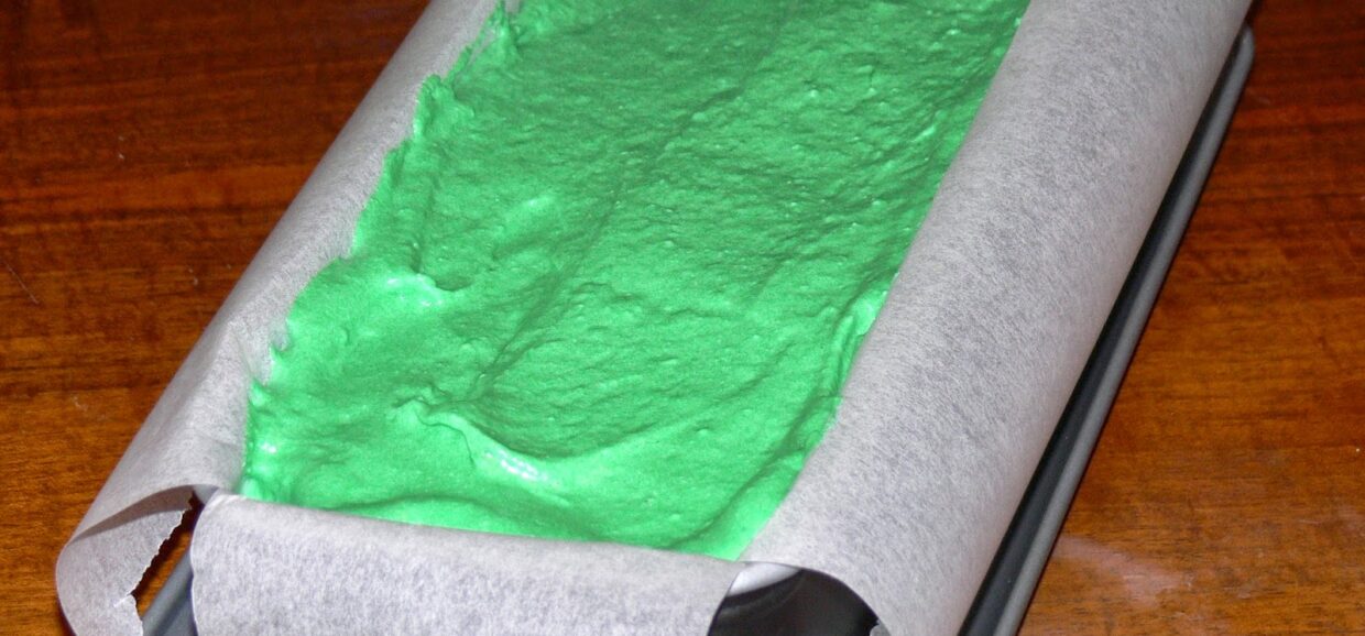 Checul verde: Puneti intr-o craticioara, pe foc mic, zaharul cu apa. Lasati pe foc pana cand zaharul este topit si siropul incepe sa fiarba. Separati ouale si bateti albusurile spuma cu putina sare. Cand albusurile sunt batute spuma tare, adaugati imediat siropul fierbinte de apa cu zahar, batand in continuare. Adaugati galbenusurile, unul cate unul, apoi colorantul, uleiul, zaharul vanilat si coaja rasa de lamaie (sau portocala, ce va place). Incorporati faina cernuta, putin cate putin, amestecand cu telul prin rasturnare, de jos in sus, pana cand se incorporeaza toata. Turnati compozitia intr-o tava de chec tapetata cu hartie de copt si coaceti la 180°C pentru aproximativ 30–40 de minute sau pana cand trece testul cu scobitoarea. Dupa coacere, scoateti checul din cuptor si lasati-l sa se raceasca. Cand a ajuns la temperatura camerei, scoateti-l din tava si puneti-l la congelator pentru cca 4 ore (astfel se va taia frumos si nu se va sfarama). Dupa cele 4 ore, taiati checul felii si decupati din fiecare felie forma de bradulet.