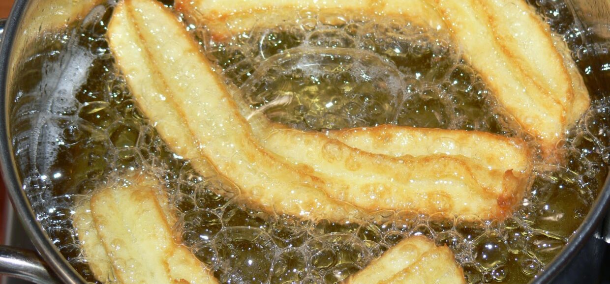 Într-o tigaie adâncă cu ulei încins se formează bastonașe lungi de aproximativ zece centimetri. Churros se prăjesc până devin aurii și frumos rumeniți, având grijă ca focul să fie mediu pentru a nu se arde la exterior.