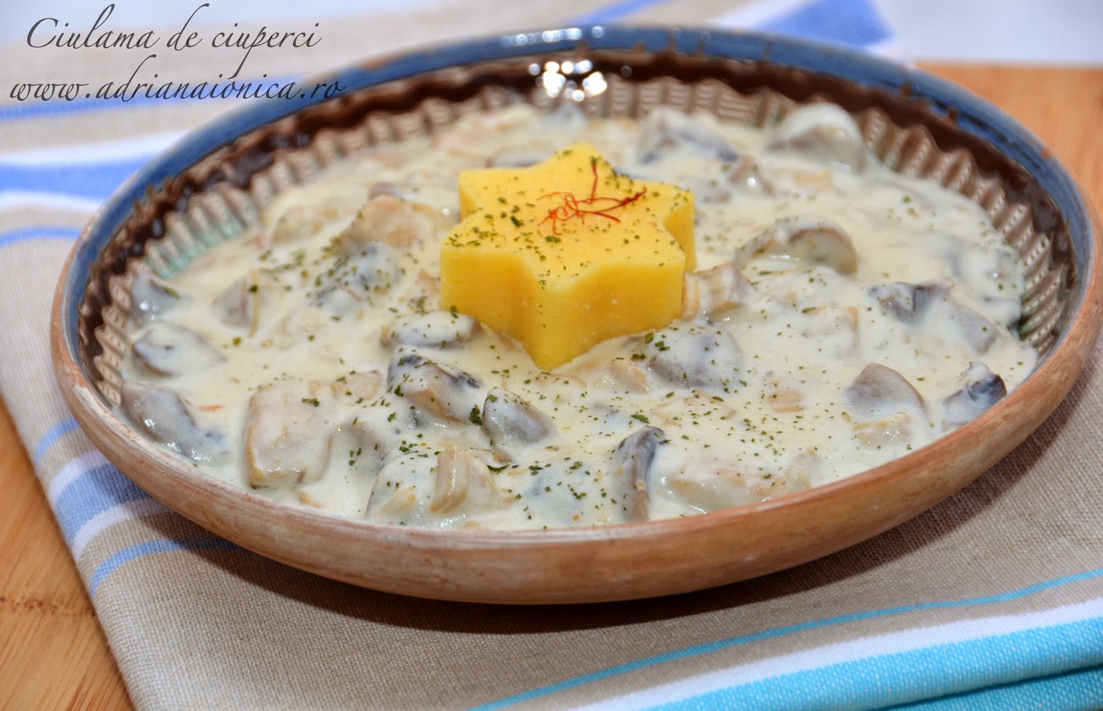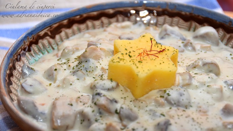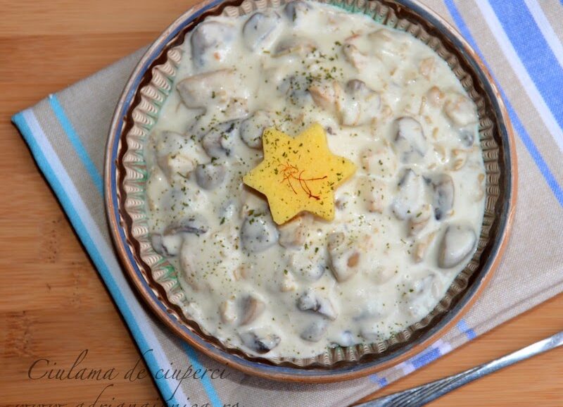 Varianta de astazi include si carne, mai exact piept de curcan, care face preparatul mai satios si mai consistent. Daca doriti o varianta fara carne, ciulamaua se poate face foarte bine doar cu ciuperci, fiind la fel de gustoasa.