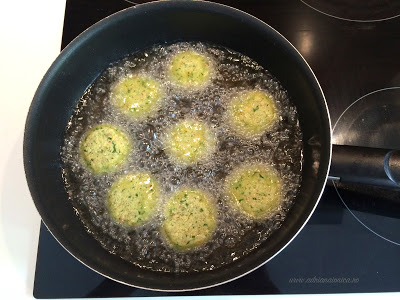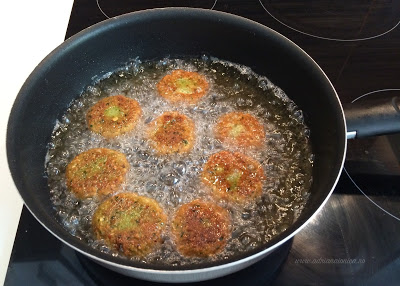 Se obtine o pasta omogena din care se formeaza chiftele mici. Daca aluatul pare prea moale, se poate adauga inca o lingura de faina.