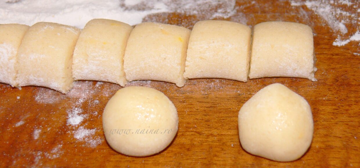 Mod de preparare: ouale intregi se amesteca bine cu zaharul, pana cand compozitia devine deschisa la culoare si usor spumoasa. Se adauga treptat uleiul, amestecand continuu. Apoi se incorporeaza faina amestecata cu praful de copt, un praf de sare si aromele, vanilia si coaja rasa de citrice. Se framanta bine aluatul, pana cand devine omogen si usor de modelat. Din aluat se formeaza rotogoale mici, aproximativ cat o chifteluta.