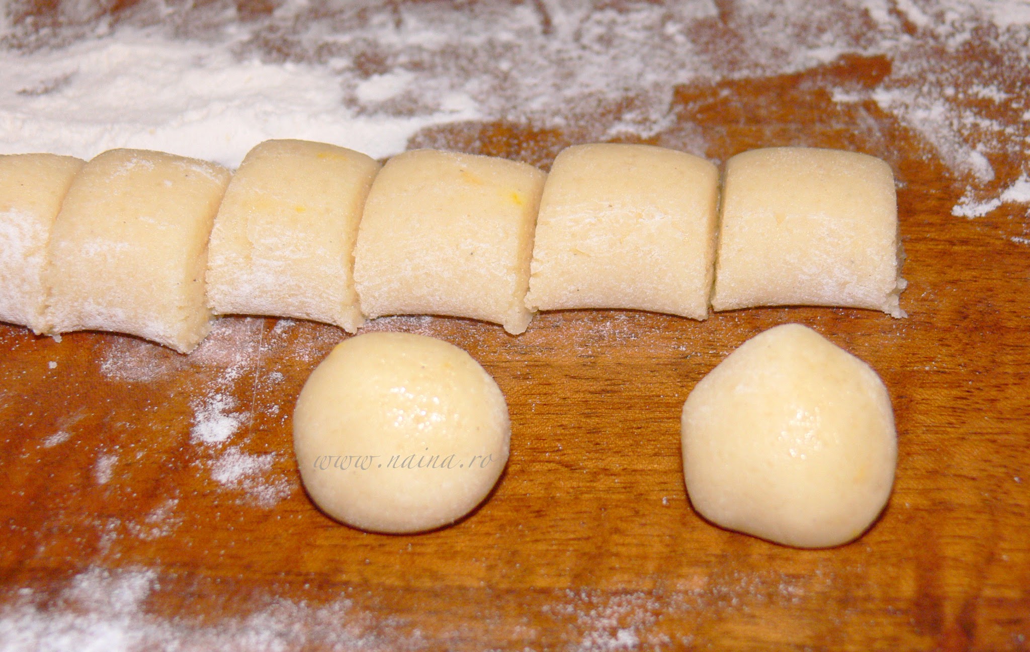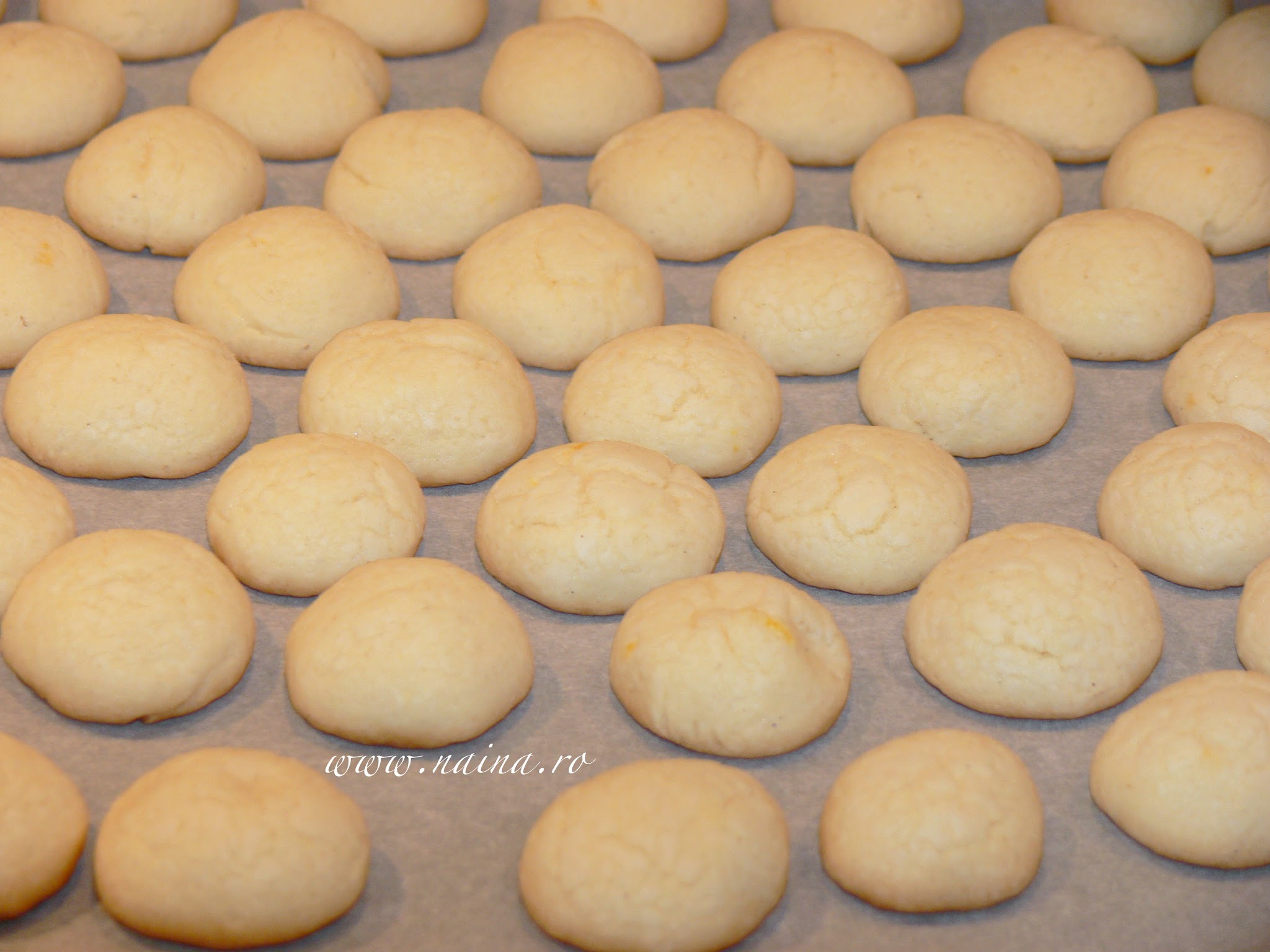 Mod de preparare: ouale intregi se amesteca bine cu zaharul, pana cand compozitia devine deschisa la culoare si usor spumoasa. Se adauga treptat uleiul, amestecand continuu. Apoi se incorporeaza faina amestecata cu praful de copt, un praf de sare si aromele, vanilia si coaja rasa de citrice. Se framanta bine aluatul, pana cand devine omogen si usor de modelat. Din aluat se formeaza rotogoale mici, aproximativ cat o chifteluta.