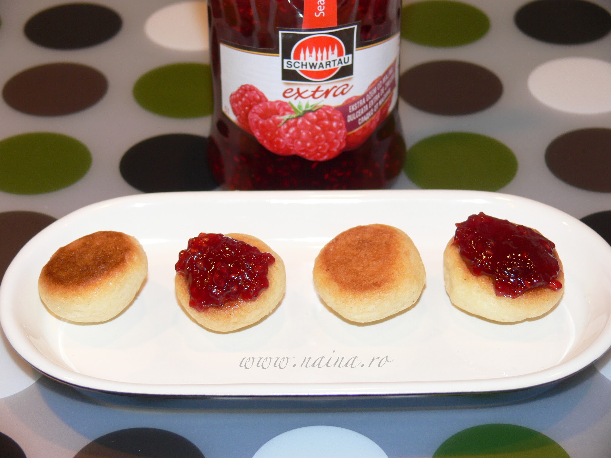 Dupa racire, fursecurile se lipesc cate doua cu gem de zmeura. Eu am ales gem de zmeura, dar reteta este la fel de buna cu orice fel de gem, in functie de gusturi sau de ce aveti prin camara.