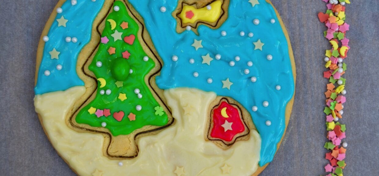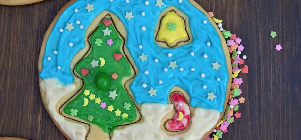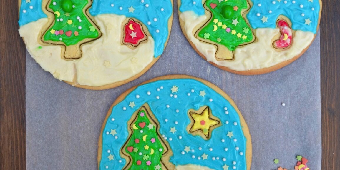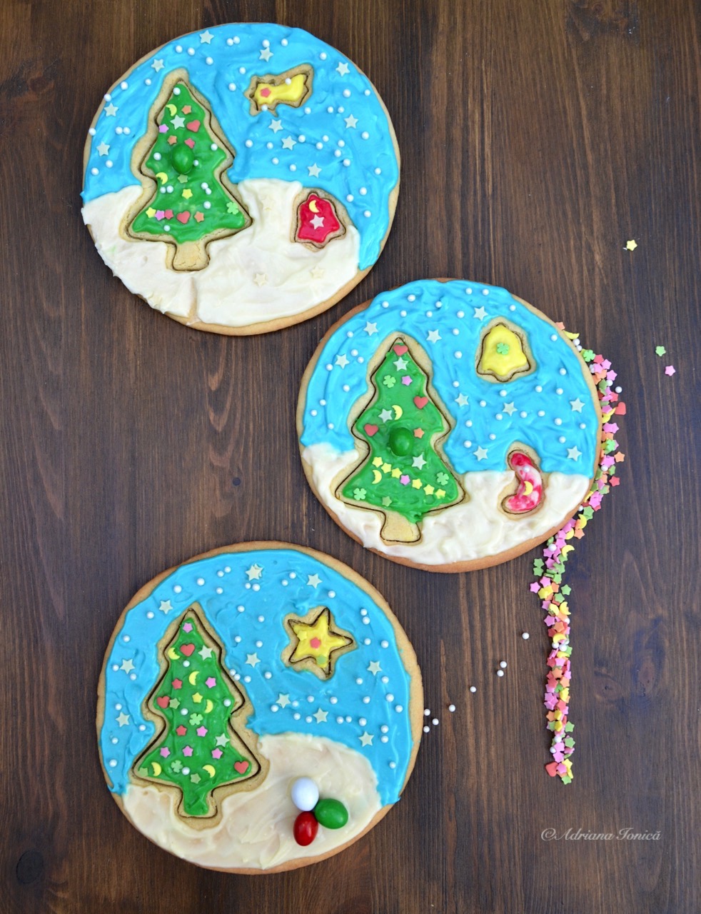 Decorate in nuante vesele de albastru, alb si verde, cu braduleti, stelute si fulgi de zapada, aceste fursecuri aduc atmosfera de poveste chiar pe masa de Craciun. Exact ca in imagine, ele pot deveni mici tablouri comestibile, gata sa bucure orice copil… si nu numai.