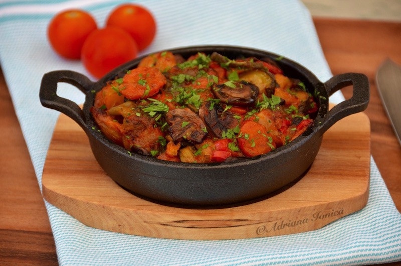 Este un ghiveci mai scazut, lasat la cuptor pana cand zeama scade aproape complet, iar gustul devine intens si concentrat. Este bun cald, dar parca si mai bun rece, cand aromele sunt si mai bine asezate.