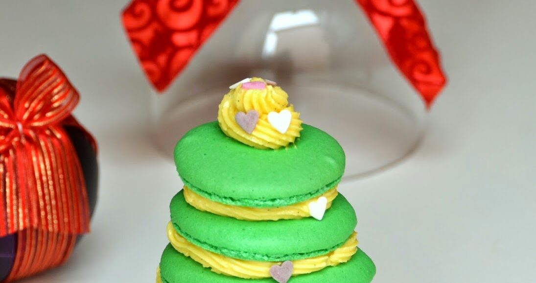 Bradut de Craciun din Macarons cu crema fina de vanilie.