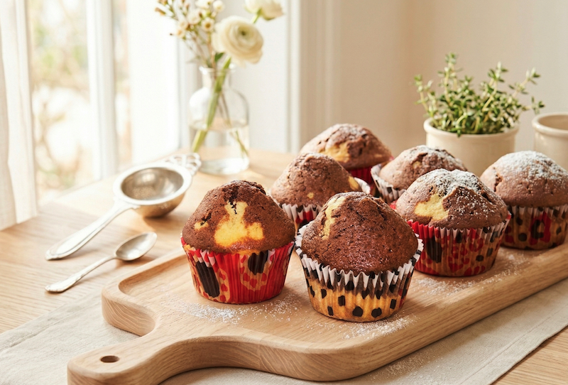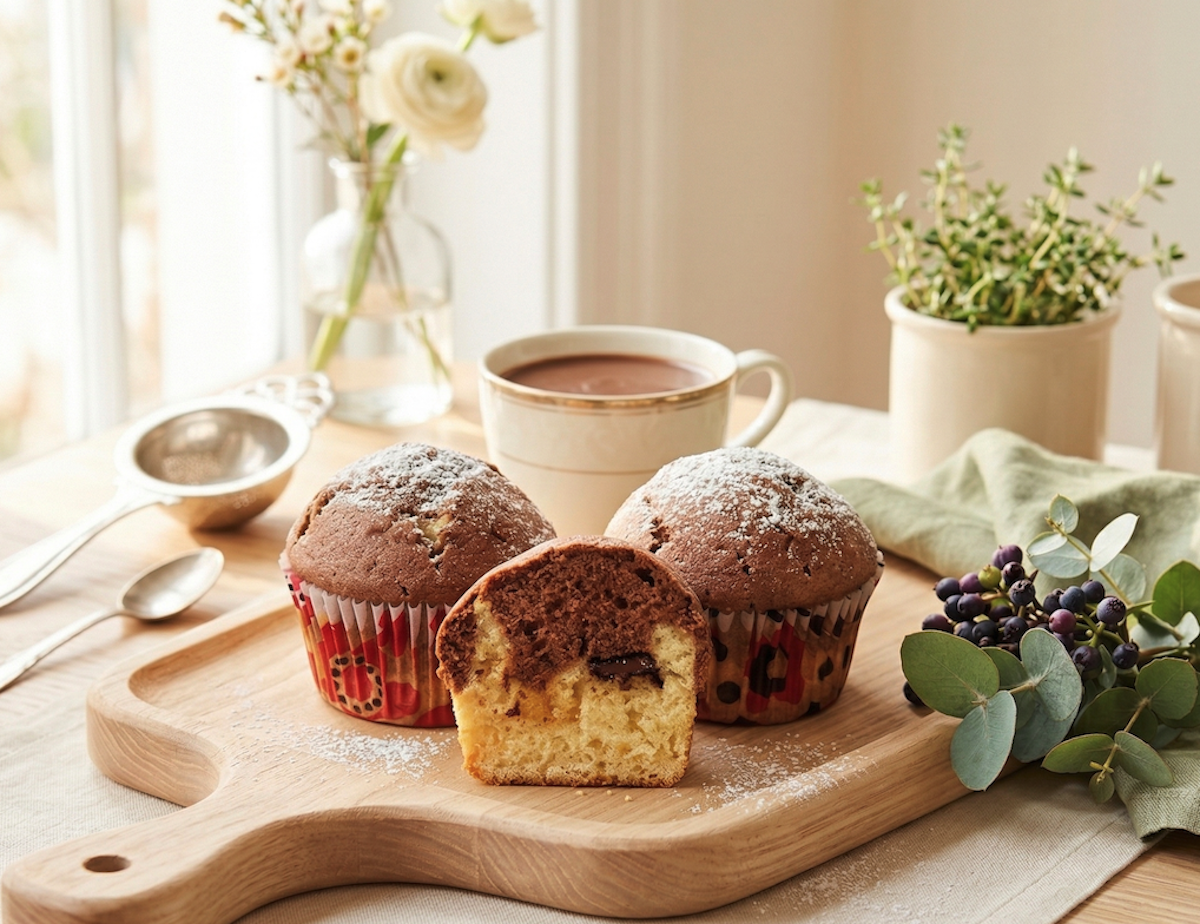 Acesti muffins sunt dovada ca un desert simplu poate fi si spectaculos. Pufosi, aromati si cu un contrast delicios intre cele doua straturi, sunt perfecti pentru orice moment al zilei. Odata ce ii incerci, cu siguranta vor deveni una dintre retetele tale preferate.