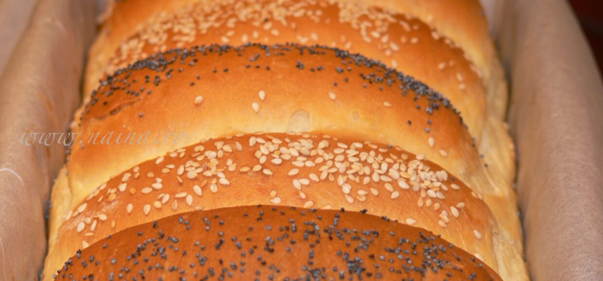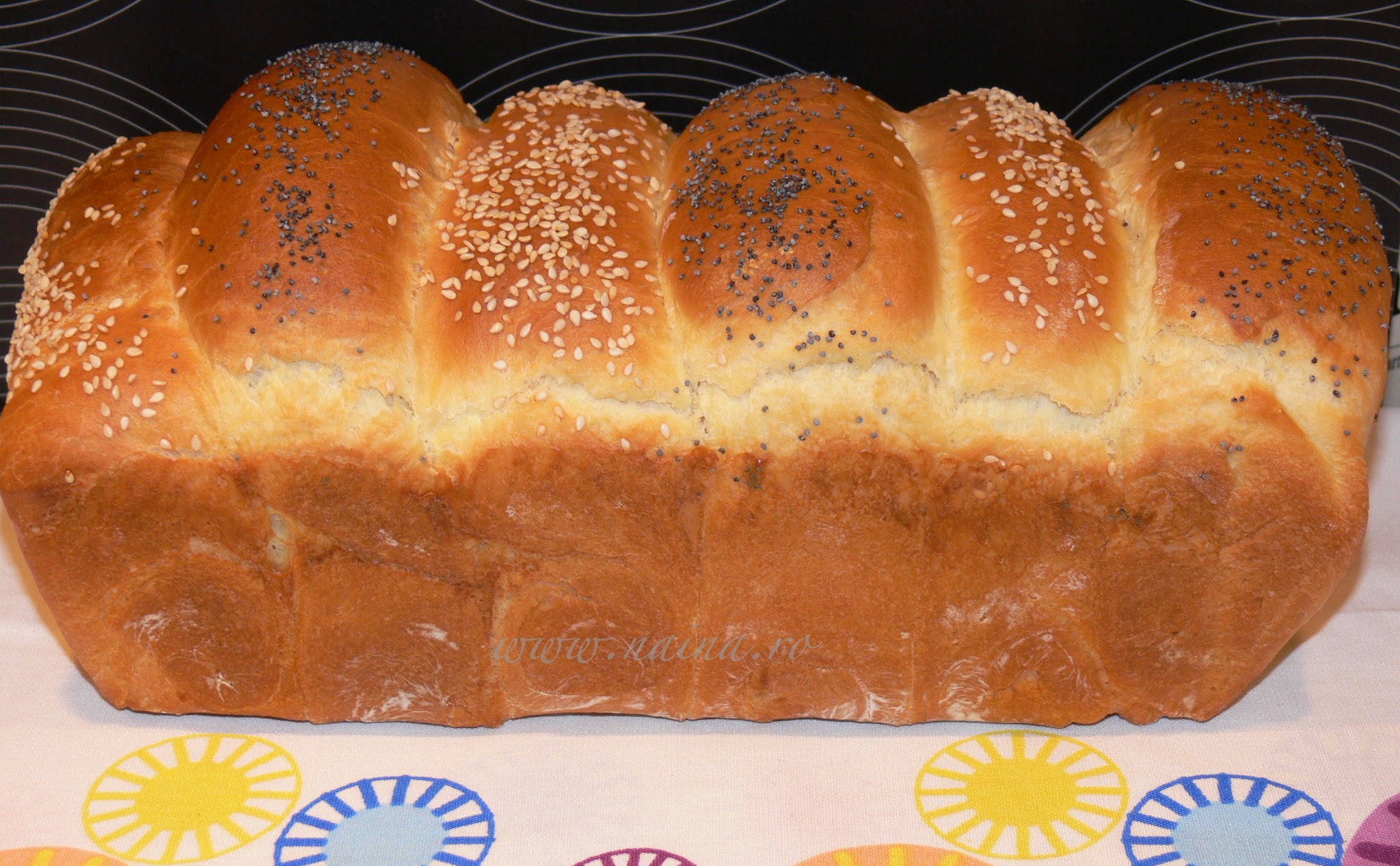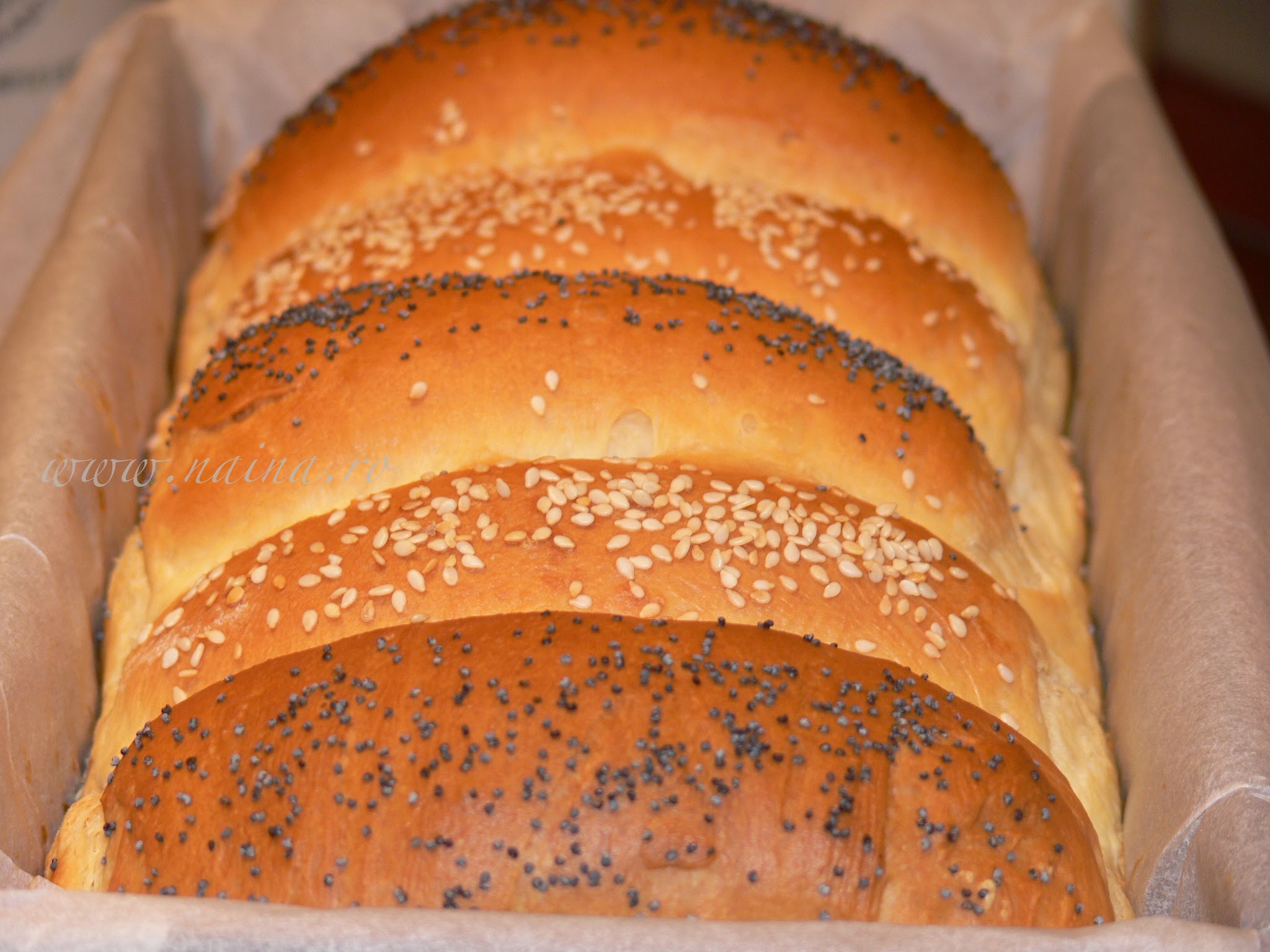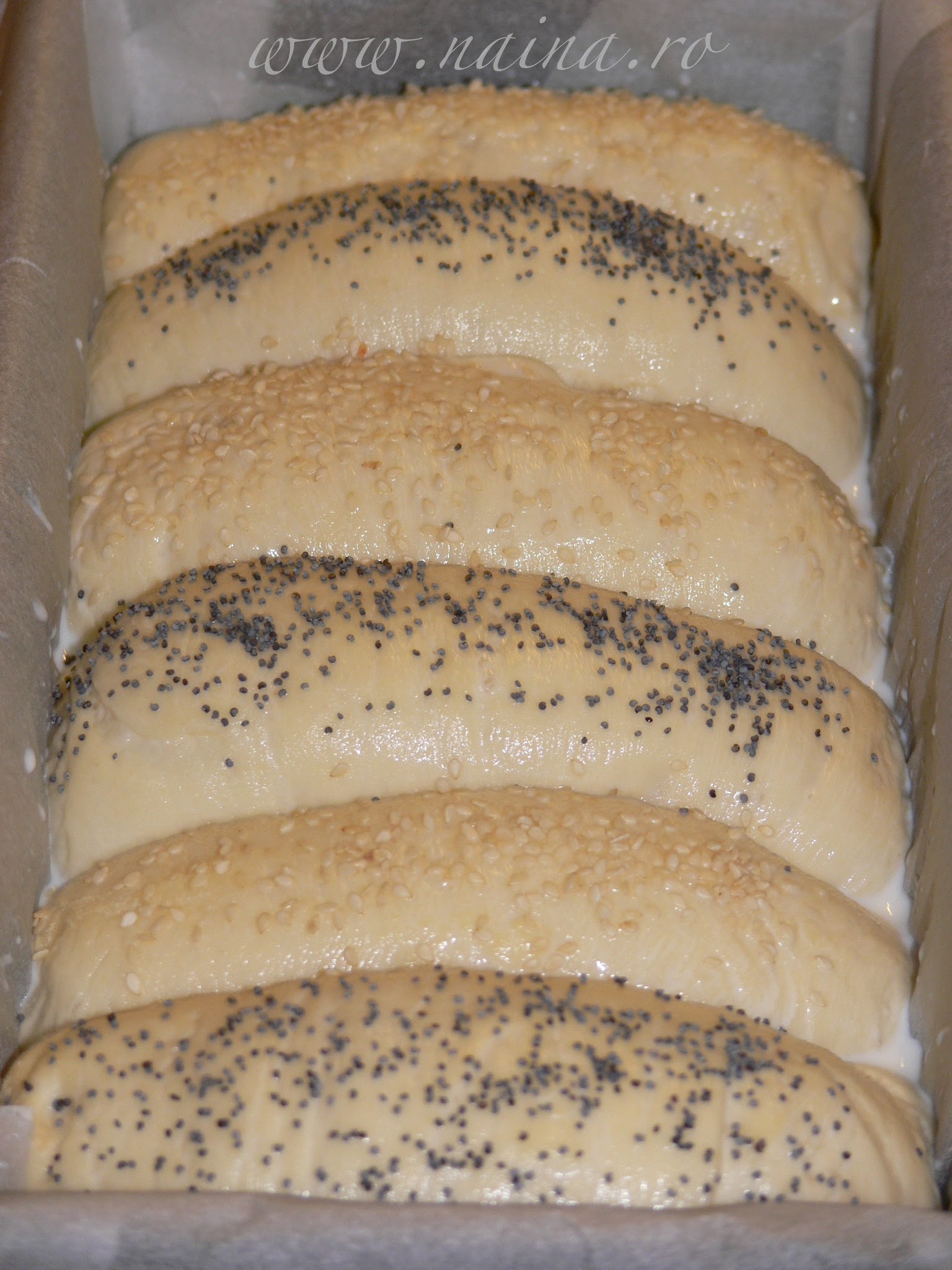 Dupa dospire, painea se unge cu putin lapte, apoi se presara: mac si susan.