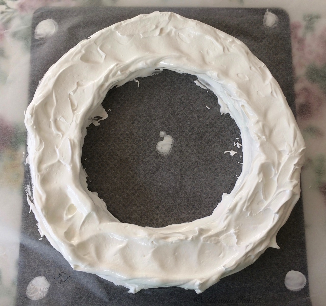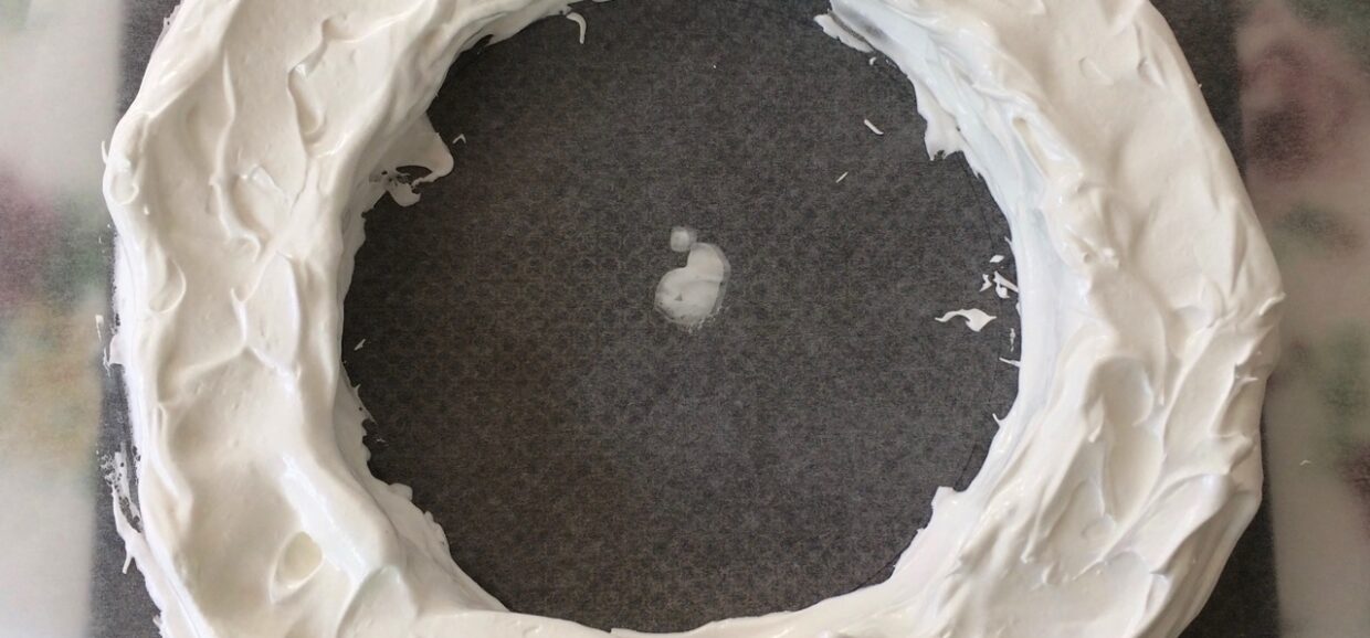 Forma de coronita, ca in imagine, nu doar ca arata de poveste, dar o face si foarte usor de portionat. Din cantitatile de mai jos iese o Pavlova mare, potrivita pentru aproximativ 10–12 persoane.