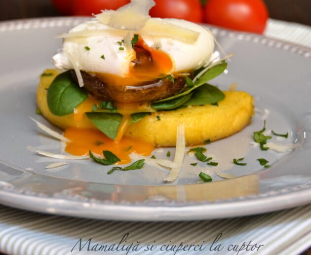 Mamaliga si ciuperci la cuptor, cu ou posat